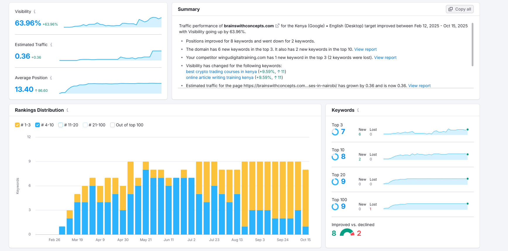 I help small businesses in Kenya boost their online visibility and attract more customers by applying proven SEO strategies that deliver measurable results. From optimizing websites for search engines to improving user experience, my goal is to make sure your business is not only found online but also chosen by the right audience.
